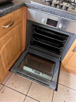The oven’s interior and exterior surfaces were thoroughly cleaned, resulting in a spotless and polished look. The glass door was free of stains and smudges, allowing for clear visibility inside the oven. Grease buildup, burnt-on food, and discoloration were effectively removed, restoring the oven to a more like new condition.